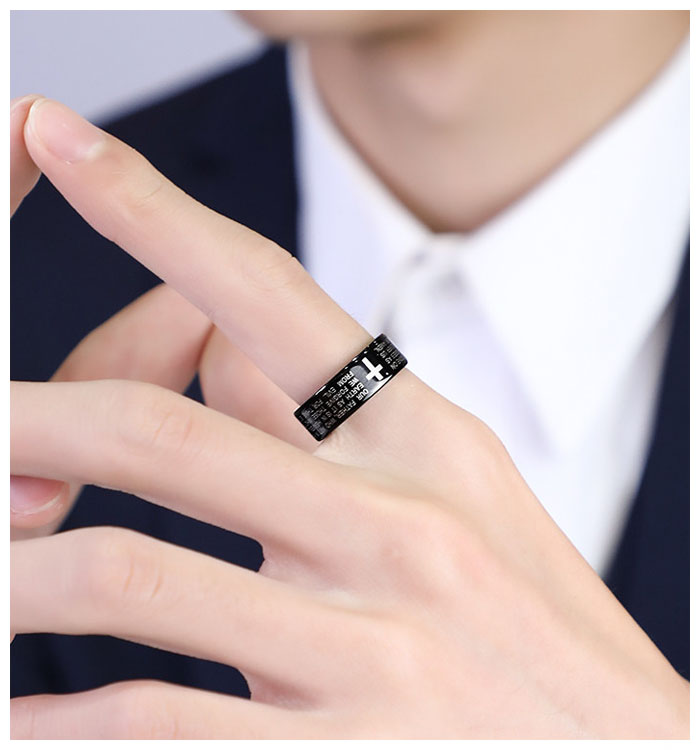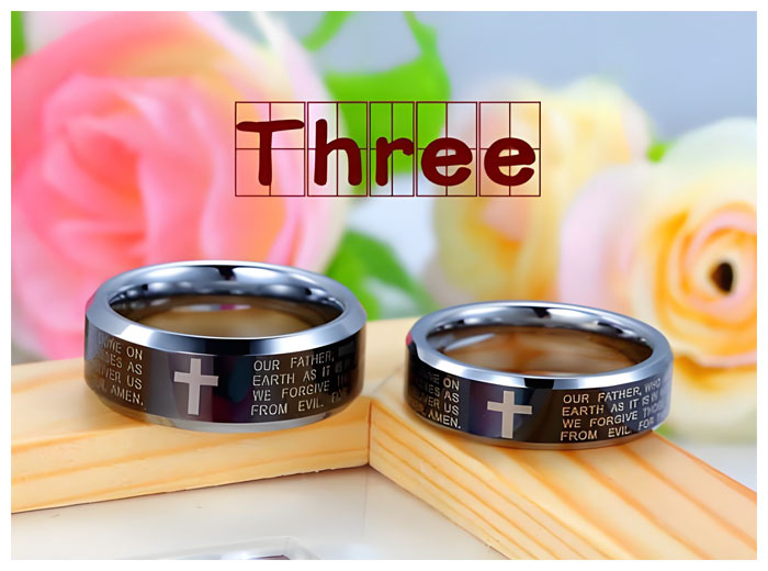 Spirituality, faith and strength will always be by your side when you and your soulmate are wearing these wedding bands. Designed to symbolize sacred love values, this pair comes in a chunky silhouette that is cut from highest quality tungsten carbide. Beautiful color combination of black and silver makes for a stand-out look, completed with a personalized laser engraving that you can customize as you please.