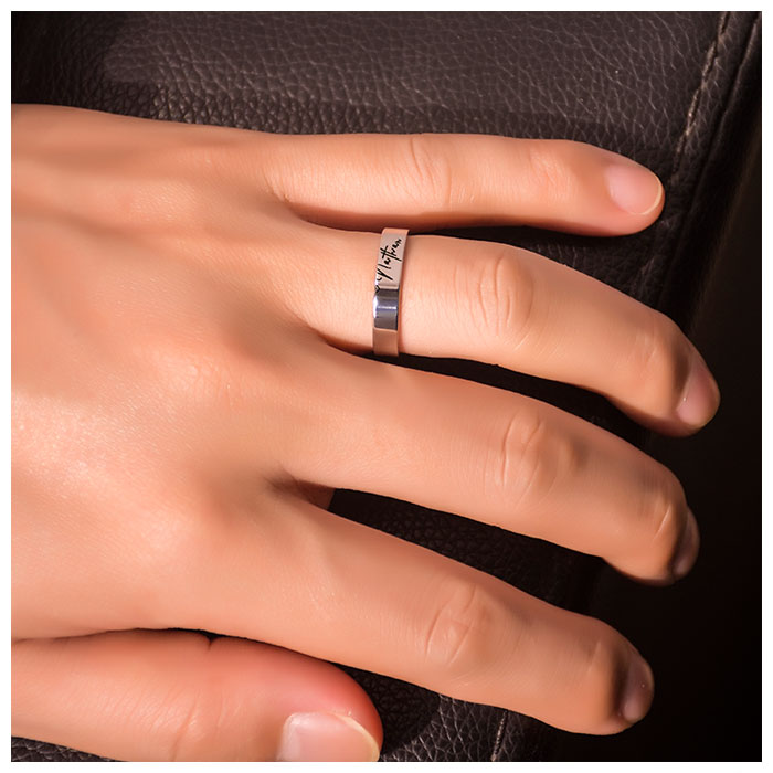 Designed in ideal sterling silver, this pair of personalized couple two name rings gives you an easy way to showcase and proclaim your love for each other. This looks great, across both rings will be an engraving of both your two names written in a creative, romantic typeface. When together, both of your rings join up - hold hands together and your rings can complete the message. Rather than just being grandiose in the design, this couple name rings come with an inner message that links you and your partner together forevermore.