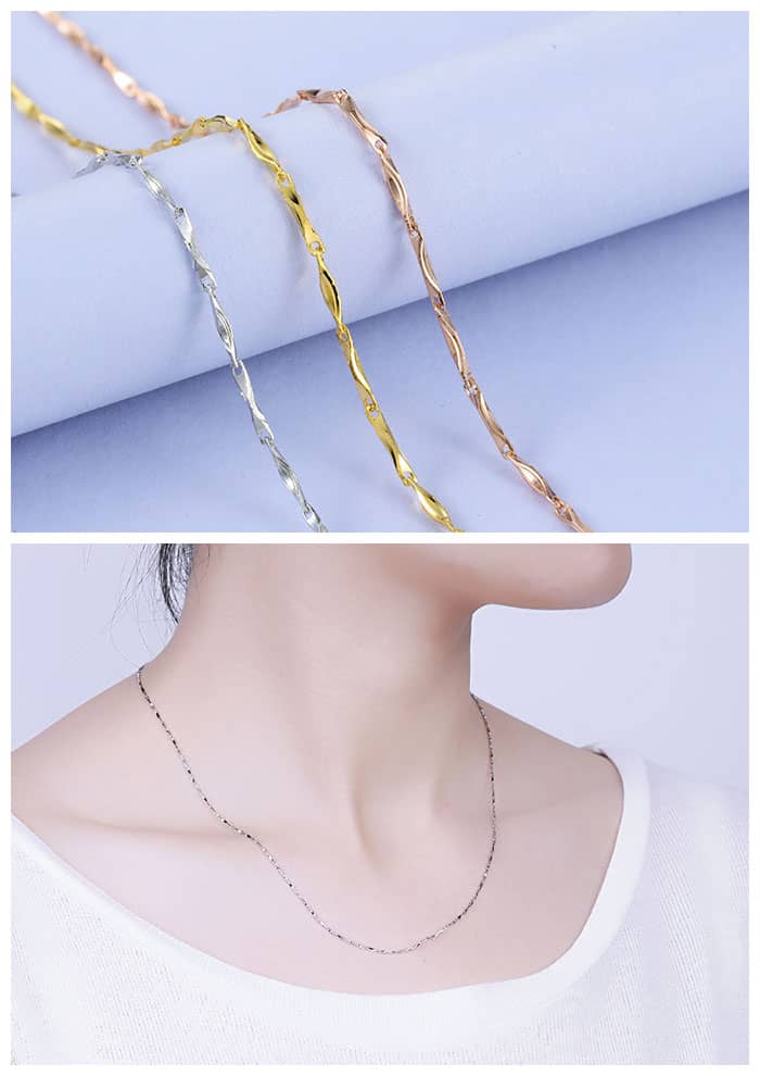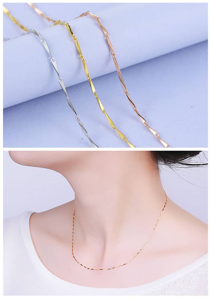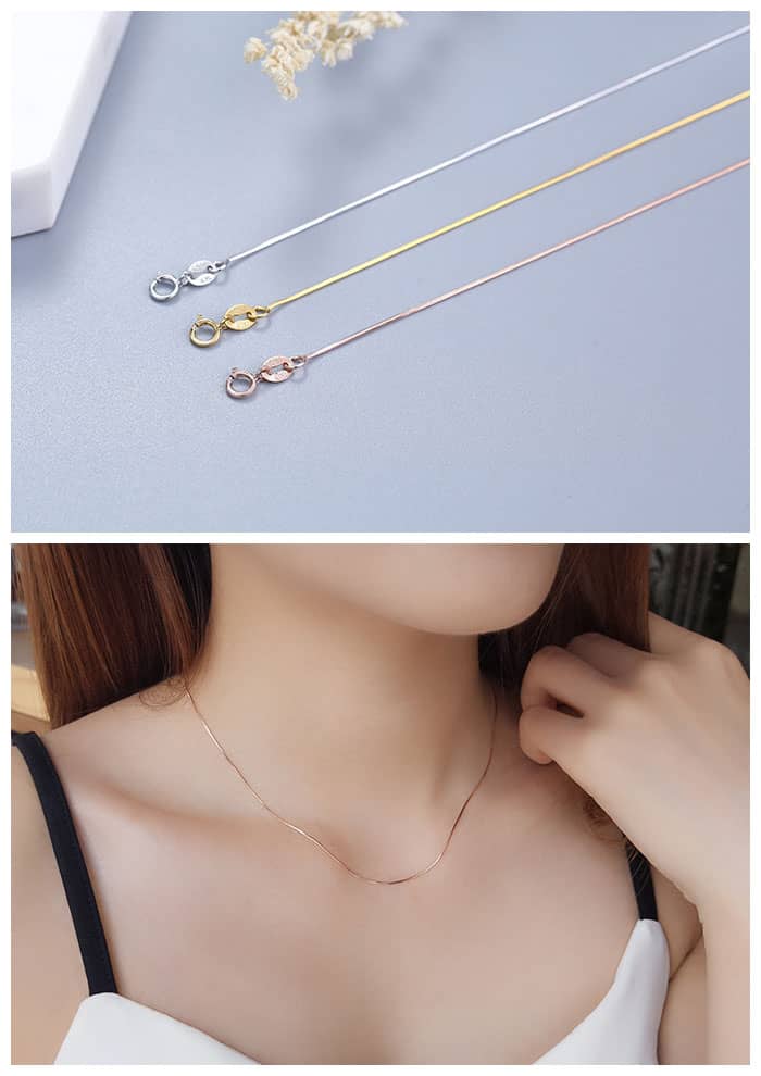Singapore Snake Box Cable Bar Link Chain Necklaces For Women, 925 Sterling Silver Pendant Chains With Spring Ring Clasp - Silver / Rose Gold / Gold Colors